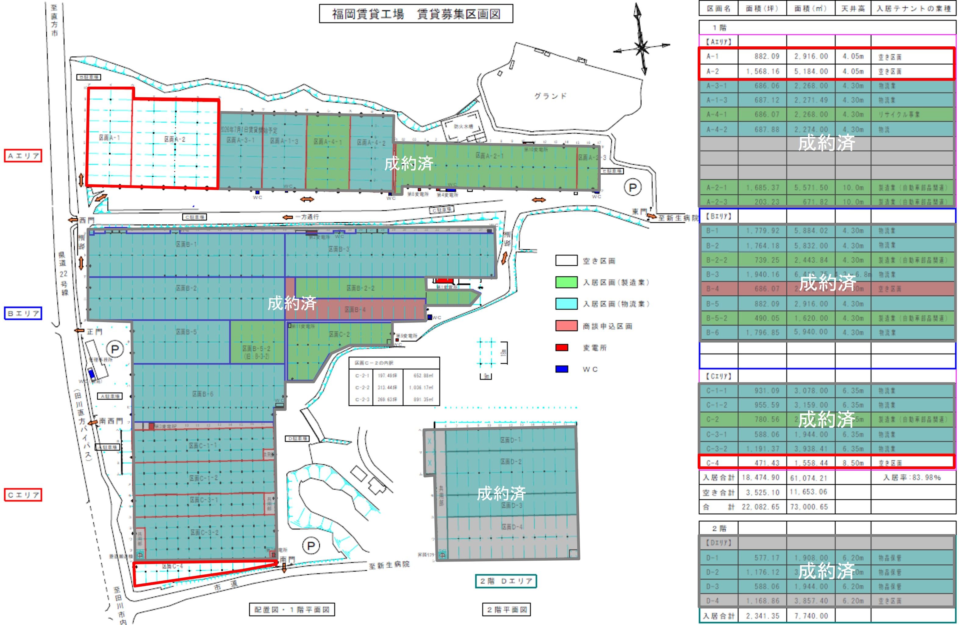 - 1階:A-1区画、A-2区画、C-4区画