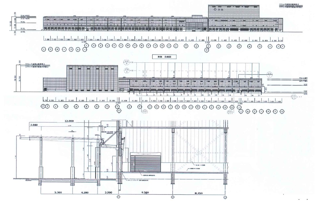 (種類/数×耐荷重kg) - EV(荷物用)/1×3,500kg, EV(荷物用)/1×5,500kg, 垂直搬送機/3×1,500kg