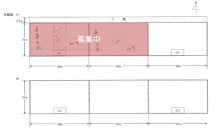 - 梁下有効高/ 1F:6.8m, 2F:5.2m