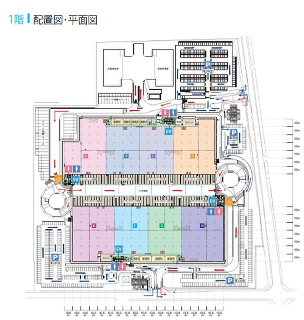 (種類/数×耐荷重kg) - 垂直搬送機/8×1,500kg, EV(荷物用)/8×3,500kg