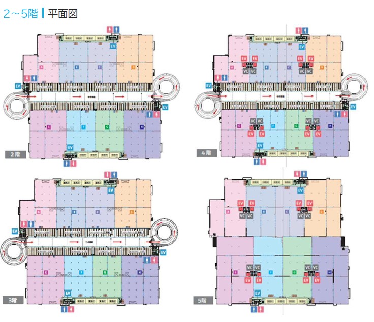 - 梁下有効高/ 1F:5.5m, 2F:5.5m, 3F:5.5m, 4F:5.5m, 5F:5.5m