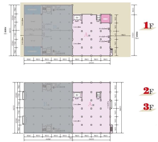 - 天高/ 1F:6.5m, 2F:6.5m, 3F:5.6m