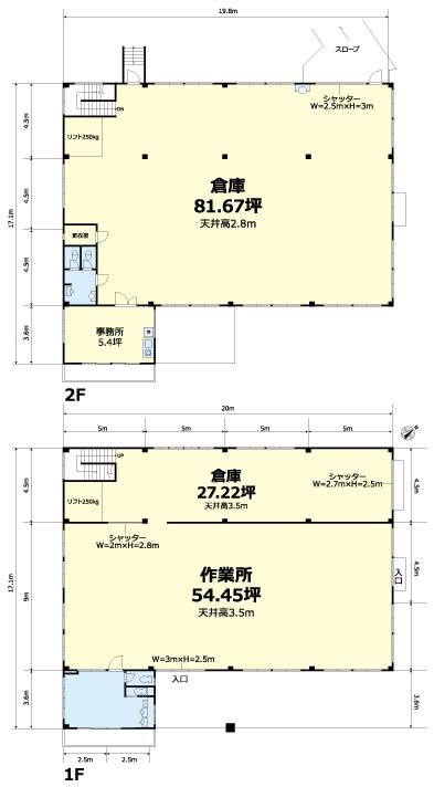 - 天高/ 1F:3.5m, 2F:2.8m